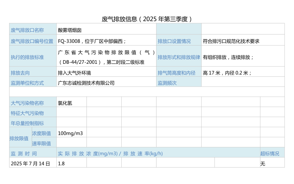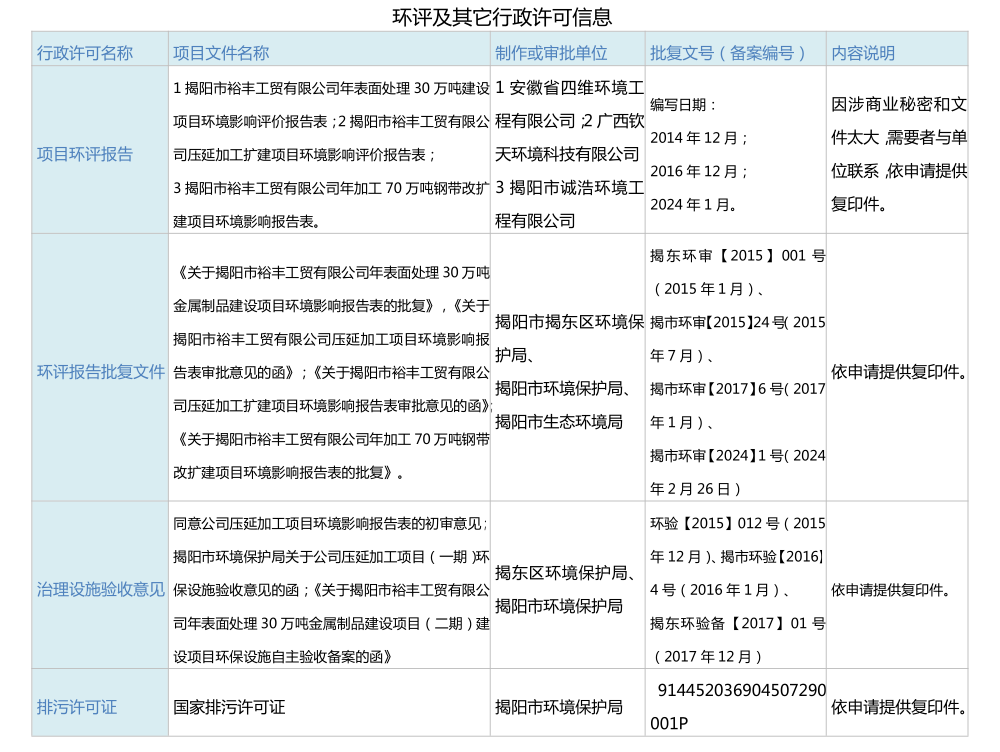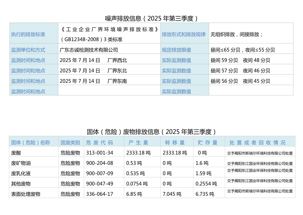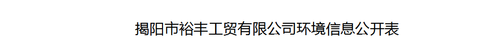 揭阳市裕丰工贸有限公司环境信息公开表(2025年第三季度)
